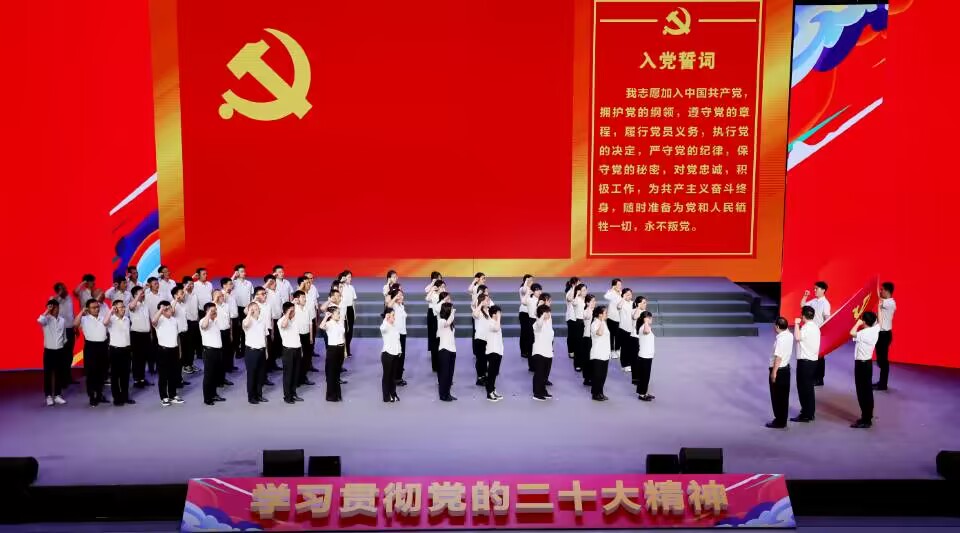 活動(dòng)中還組織了新黨員集體宣誓,對集團(tuán)先進(jìn)典型事跡進(jìn)行展播。慶?;顒?dòng)在全場合唱《沒有共產(chǎn)黨就沒有新中國》的歌聲中落下帷幕。