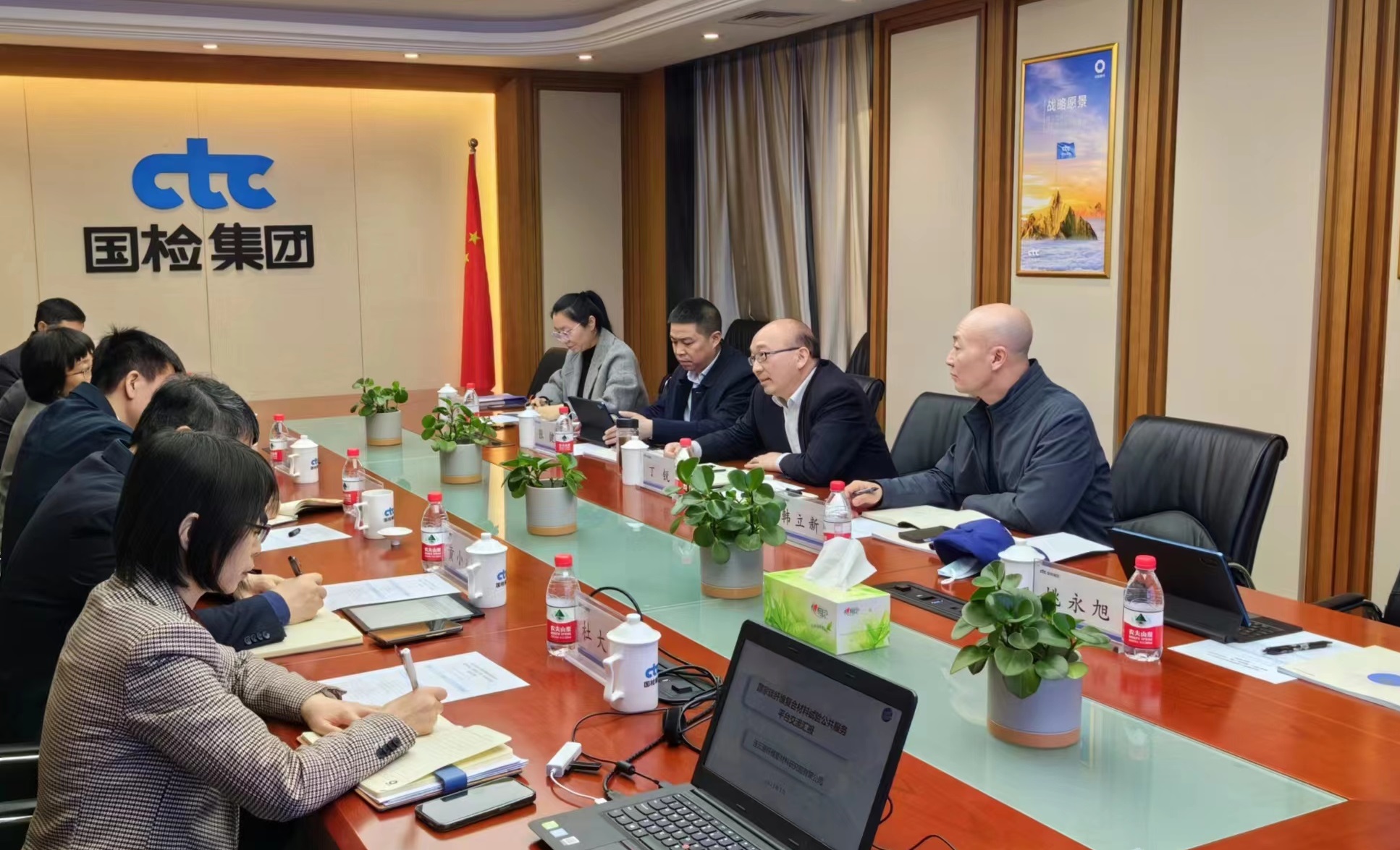 國(guó)檢集團(tuán)黨委書記、總經(jīng)理朱連濱,黨委副書記陳璐對(duì)丁銳的到來(lái)表示歡迎。雙方分別介紹了國(guó)檢集團(tuán)、工投集團(tuán)、碳纖維復(fù)合材料試驗(yàn)平臺(tái)等基本情況,重點(diǎn)圍繞合作基礎(chǔ)、合作方向及合作模式進(jìn)行深入探討交流,在共建檢測(cè)分支機(jī)構(gòu)、共享實(shí)驗(yàn)室、共推研發(fā)項(xiàng)目及共擔(dān)檢測(cè)業(yè)務(wù)等方面達(dá)成共識(shí),下一步將繼續(xù)深化交流,推進(jìn)具體合作事項(xiàng)開(kāi)展,加快實(shí)現(xiàn)資源融合、共同發(fā)展。