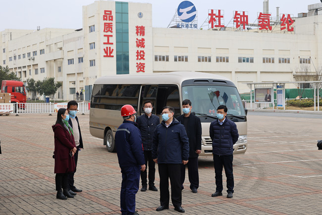 3月15日上午,市委常委、區黨工委書記商振江一行來氨綸公司檢查疫情防控和安全生產工作,總經理張斌陪同調研。