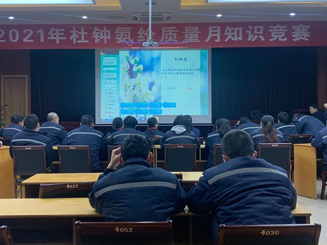 12月28日下午,為檢驗質(zhì)量月活動成效,杜鐘氨綸公司于多功能廳舉辦“質(zhì)量月”綜合知識競賽。