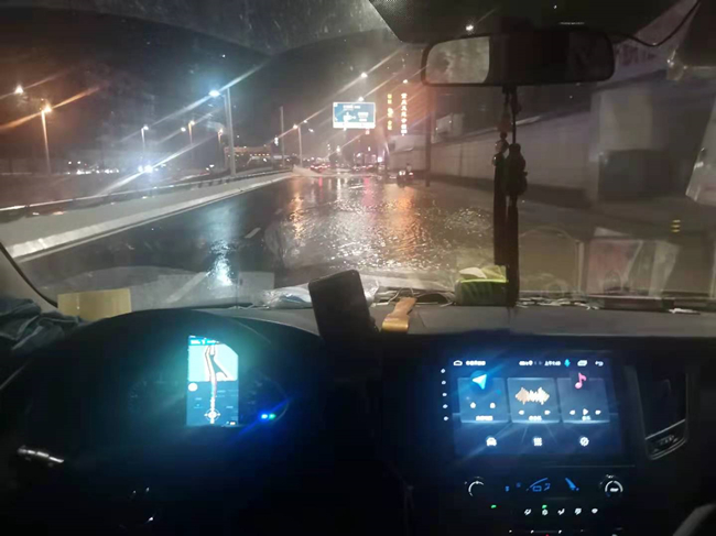 一路上,心急如焚,希望貨車能夠快點,再快點。路上不時遇到同樣掛著橫幅,滿載救援物資的車輛,他們來自祖國各地,大家很有默契的鳴笛互相致敬。剛剛還在享受著作為施救者的“小驕傲”,感受著來往車輛對我們的注目,但在我們到達鄭州的那一刻,親眼看到這個滿目瘡痍的城市時,我被震撼到了。雖然之前在網上了解到鄭州的受災情況,但真的沒想到印象中昔日繁華的街道成為現在的樣子,看到滿街報廢的車輛、無家可歸的人群、泥濘的道路……一份疼痛感油然而生。