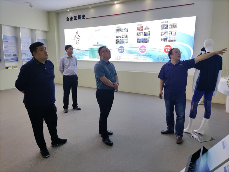 一行人先后參觀了公司展廳、八期生產線、自動化包裝線等。參觀過程中,公司總經理張斌對我公司的發展歷程,差別化產品、戰略優勢、積極開拓營銷渠道,創新運用新媒體傳播方式推進商品銷售等進行了詳細介紹。孫書記對我公司低溫熱粘合氨綸、抗菌氨綸、驅蚊氨綸及氨綸生產全流程自動化、智能化生產線等給予了高度評價。希望雙方加強交流深化合作,攜手共創美好未來。