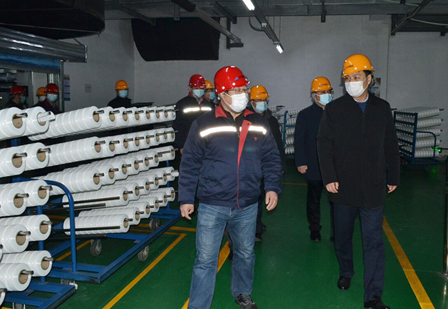 2021年2月18日下午,新年上班第一天,副市長魏愛春一行在集團公司黨委書記、董事長楊龍,總經理胡建明的陪同下來我司進行調研并致以新春的祝福。氨綸公司黨委書記胡傳法、總經理張斌陪同接待。