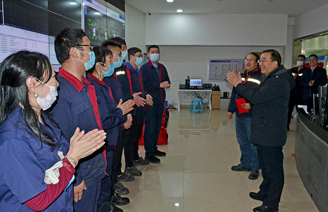 “過年了,你們還堅守在第一線,大家辛苦了。”2月12日,大年初一一早,陽光明媚,集團公司總經理胡建明一行在公司總經理張斌的陪同下來我公司,對春節期間堅守一線的員工們送上新年祝福和慰問品。