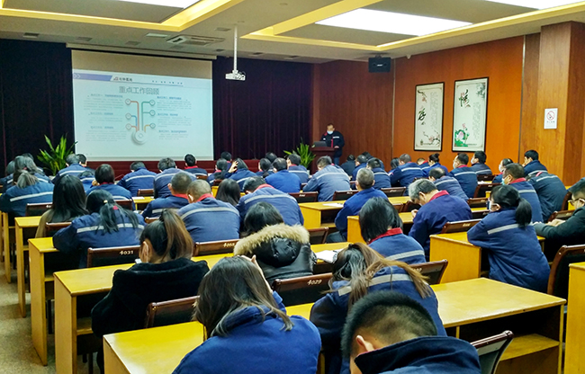 1月12日上午,氨綸公司2020年度中層管理人員述職暨管理技術(shù)人員考評(píng)會(huì)議在一樓多功能廳舉行。公司管理及技術(shù)人員100余人參加了會(huì)議。