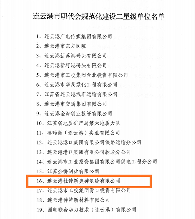 近期,連云港市總工會對全市各級職代會規(guī)范化建設表現(xiàn)突出的企事業(yè)單位進行了表彰,公司榜上有名,獲評市“職代會規(guī)范化建設二星級單位”稱號。