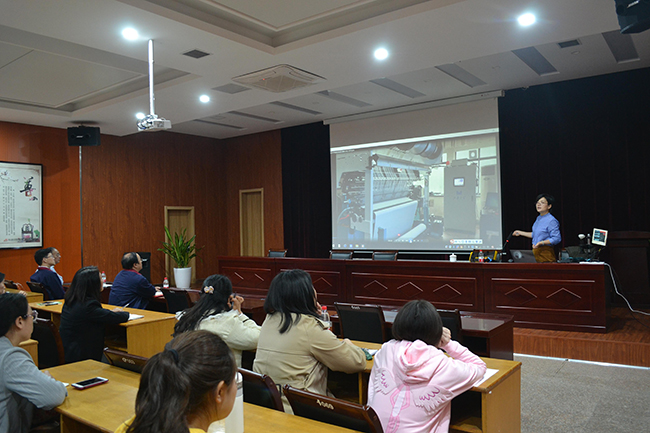 上午,由萬愛蘭教授講述了經編方面的基礎知識,其中包括經編原理、經編機類型與結構、經編在服裝、產業方向的應用等內容。萬教授還將照布鏡和樣布帶到了課堂中,實踐和理論相結合讓大家充分地了解經編知識及經編產品,同時也活躍了課堂氛圍,大家積極提出問題,老師耐心講解,充實而愉快地結束了上午的課堂內容。