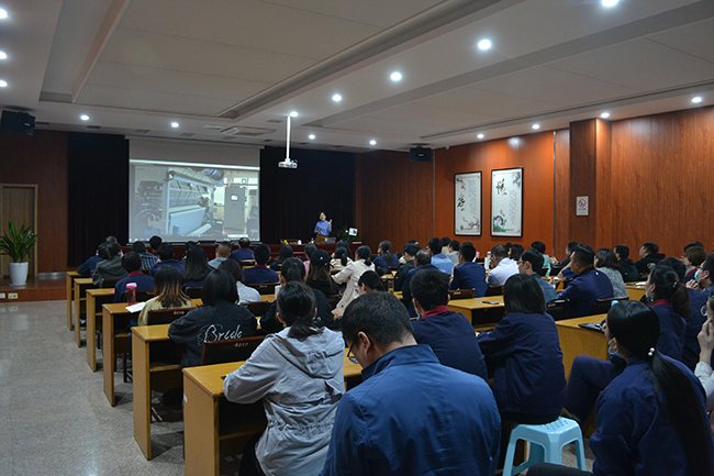 10月10日,公司邀請江南大學萬愛蘭教授與李炳賢教授來連,進行針織專業知識方面的講座。公司技術研發、生產、銷售等人員參加了此次培訓,另外還邀請了奧神研究院、神特新材料和奧神新材料的生產技術人員共同參與了此次大課堂。課前張斌總經理發表講話歡迎兩位教授蒞臨公司授課,希望參訓人員珍惜學習機會,實踐與理論相結合,提升自身的專業水平。