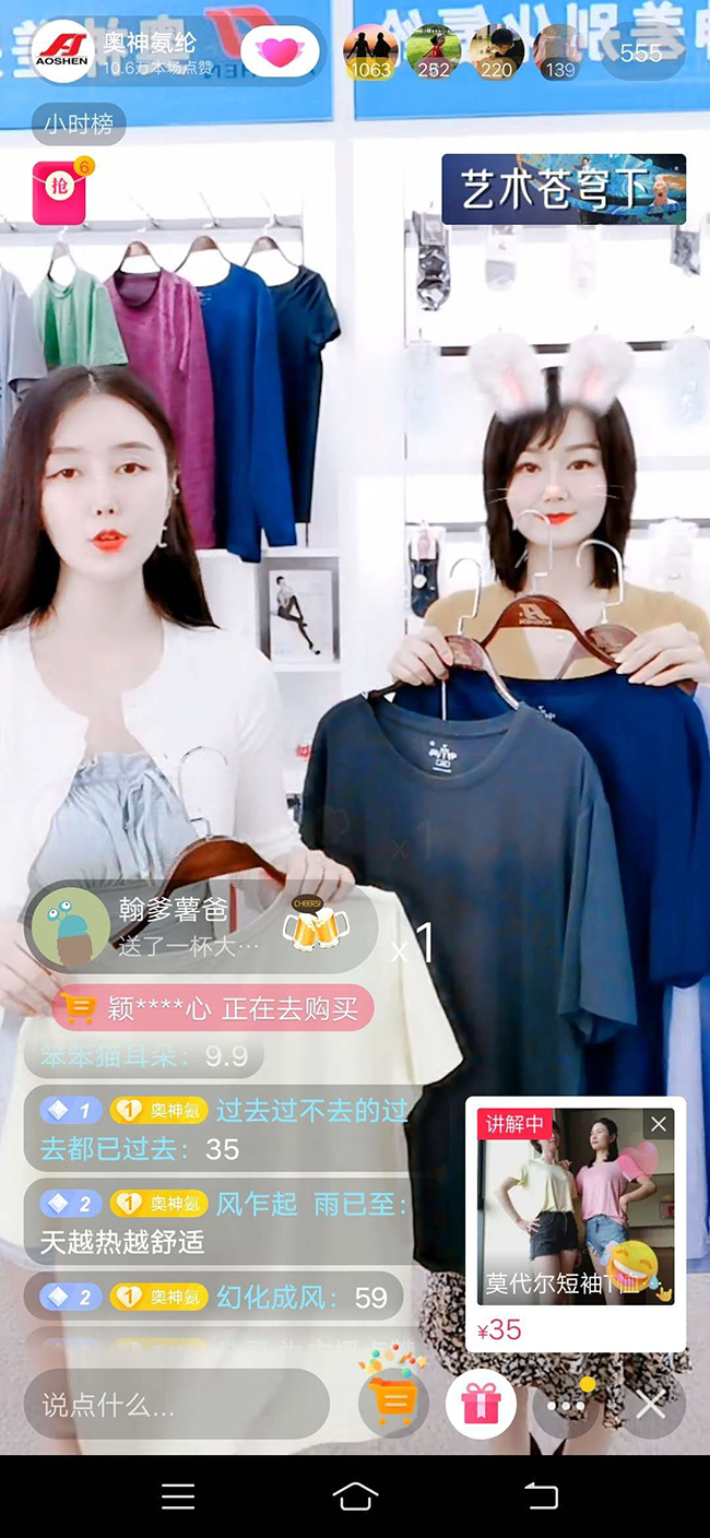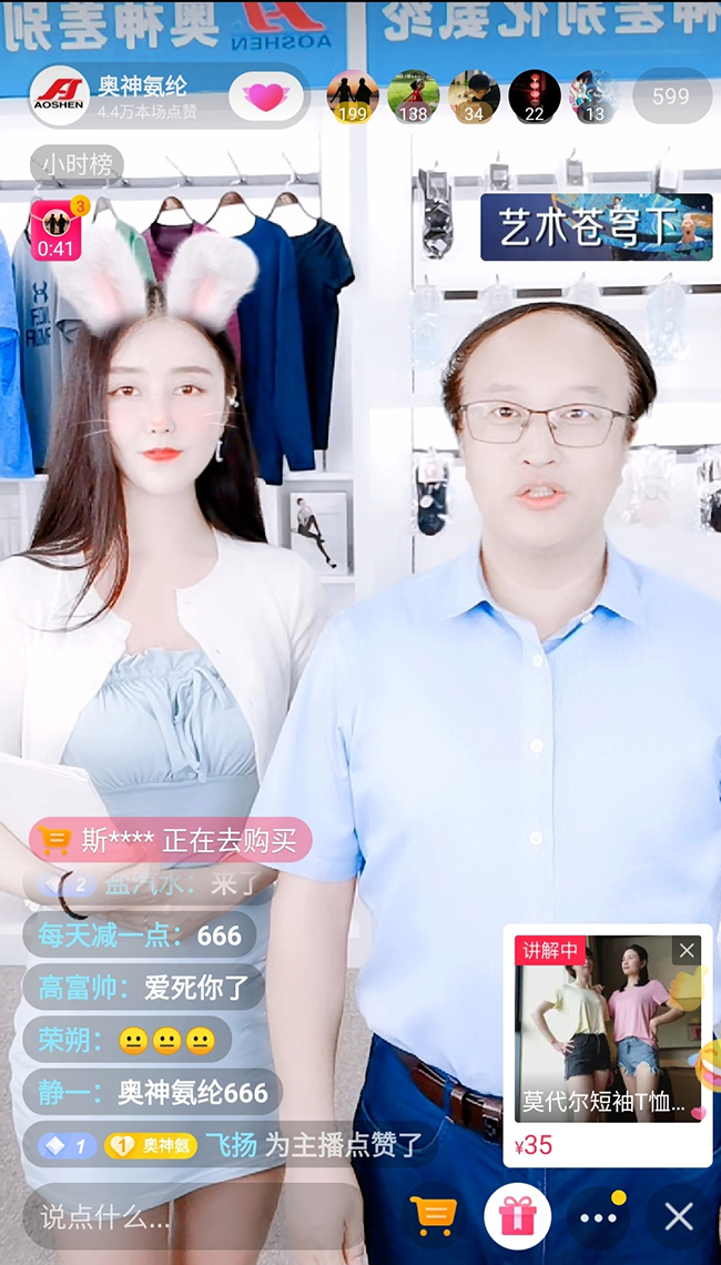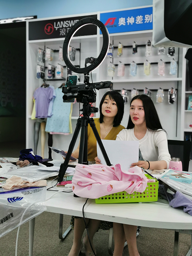 活動中,公司總經理張斌為直播活動開幕致辭。張斌總經理表示,連云港杜鐘新奧神氨綸有限公司作為國有企業,將積極借助網絡直播平臺,探索電商線上發展新模式,把奧神氨綸的商品更好地推向市場。活動中,我們邀請知名主播為線上的觀眾們帶來了具有專利抗菌作用的內褲、連褲襪、家居服、莫代爾T恤等產品。通過開啟“云逛街”模式,帶領大家在抖音淘寶平臺感受奧神氨綸的產品和企業文化。