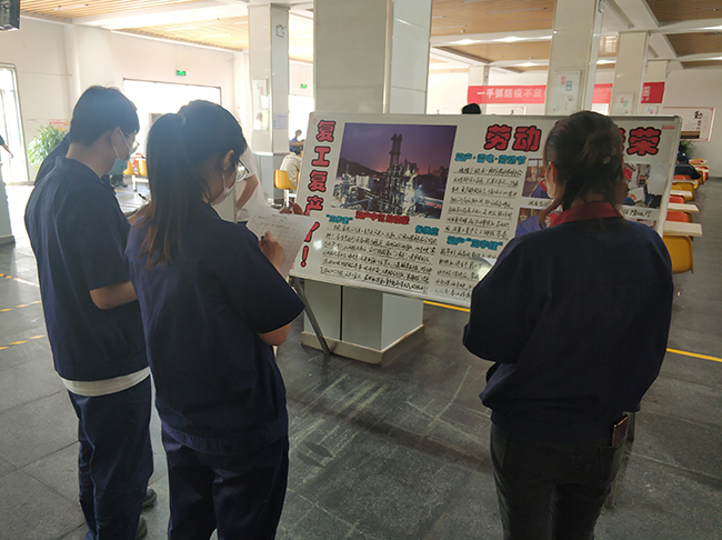 5月21日,公司開展了以“抗疫情•復工復產(chǎn)”為主題的板報評比活動。來自生產(chǎn)一部、生產(chǎn)二部、品保部、公用工程部、生產(chǎn)設(shè)備部、技術(shù)研發(fā)部以及管理部門的7個部門參加了評比。