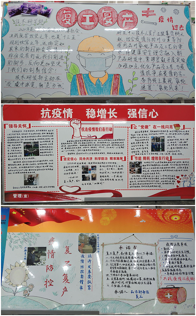 各部門高度重視,利用業(yè)余時間,認真進行設(shè)計繪制,通過展板,展示了在復工復產(chǎn)中各部門一手抓防疫一手抓生產(chǎn)的生動實踐,充分宣傳了氨綸公司員工立足崗位謀奉獻的精神風貌。在互評環(huán)節(jié)中,各部門選派的員工本著公正、公平、公開的原則,從主題內(nèi)容、版面構(gòu)思、文字書寫、內(nèi)容設(shè)計、色彩搭配五個方面分別對板報進行打分,最終經(jīng)綜合評定,管理部門獲得一等獎,生產(chǎn)設(shè)備部、公用工程部獲二等獎,品保部、生產(chǎn)一部、生產(chǎn)二部、技術(shù)研發(fā)部獲得優(yōu)秀獎。