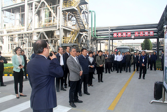 10月8日,全市第三季度經濟形勢分析會暨重點項目現場觀摩會走進氨綸公司。市四套班子全體負責同志、秘書長,市委辦公室、研究室主任,市委、市政府相關副秘書長,市政府辦公室主任,各縣區(板塊)黨政主要負責同志以及市各有關部門主要負責同志一行70余人參加觀摩。集團公司黨委書記、董事長楊龍、總經理胡建明陪同。