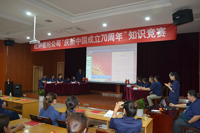 為了切實加強黨的基層組織建設,增強黨員隊伍生機活力,組織引導各黨支部和廣大黨員爭發展之先、創和諧之優,以迎接黨的70周年生日。2019年9月26日,氨綸公司“慶新中國成立70周年”知識競賽在多功能廳舉辦。黨委書記趙萬明、公司總經理張斌等領導班子成員出席了本次活動。