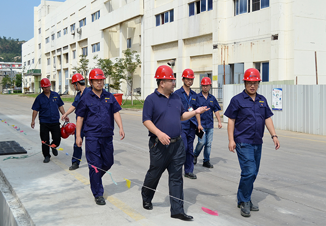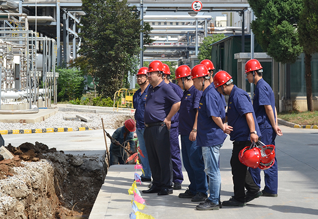 楊董事長深入一線實地察看了氨綸公司施工現場、生產車間、精制罐區、危廢庫等,詳細詢問了氨綸公司安全、消防、監控設施的運行情況。楊董事長在檢查中強調:近期,從中央到地方對安全生產工作的要求提升到了一個新的高度,大家務必要進一步提高安全生產意識,完善安全檢查制度、落實隱患整改。一定要切實加強安全培訓,利用班前早會鞏固安全規范、嚴守勞動紀律。強化日常安全管理,認真落實好節日期間應急管理和值班制度,對設備進行全面檢查維護,通過扎實有效的舉措確保節日期間安全生產平穩運行。