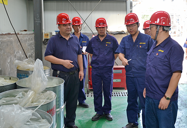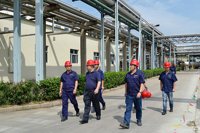 中秋、國慶臨近,為確保節日期間安全生產,9月6日上午集團公司黨委書記、董事長楊龍來氨綸公司檢查安全生產工作。公司黨委書記趙萬明、總經理張斌、副總經理楊森陪同。