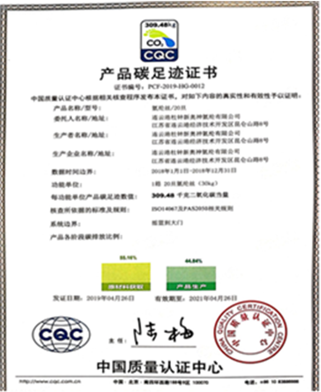 2019年,公司順利通過了碳排查,獲得了由中國質(zhì)量認證中心發(fā)放20D氨綸纖維的的碳足跡證書。