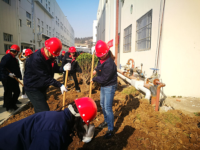 陽春三月,又是一年芳草綠,春回大地,又到植樹造林時。2019年3月12日上午,正值第四十一個植樹節,氨綸公司各黨支部的黨員志愿者們響應“為氨綸增添新綠,創和諧綠色企業”號召,積極參與植樹活動中來。