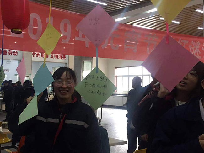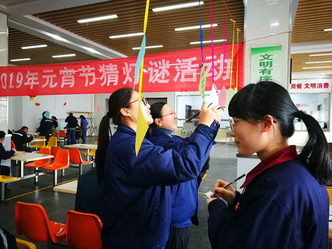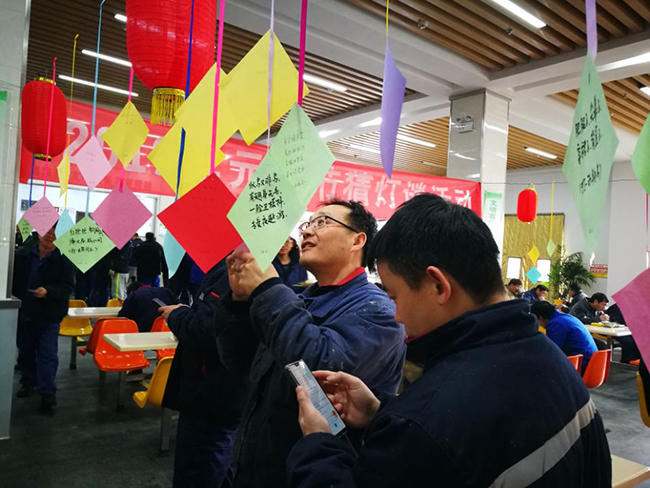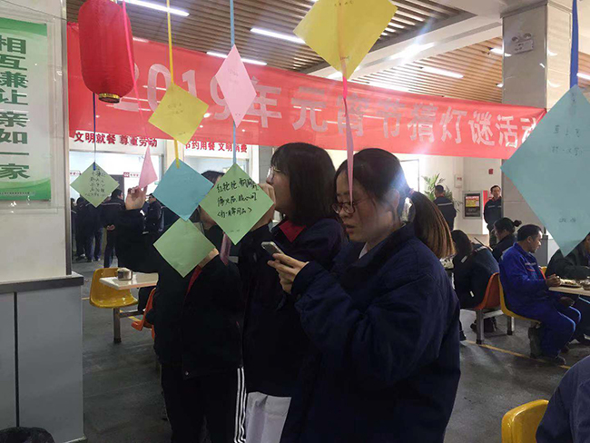 2月19日正月十五元宵節,氨綸公司舉辦的元宵節猜燈謎活動在公司食堂如火如荼的展開了。公司食堂懸掛起近百條五顏六色的謎語紙片和燈籠,廣大全體員工踴躍參加。