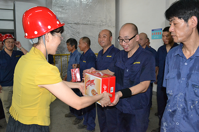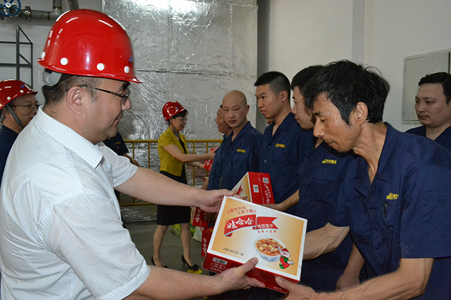 7月17日上午,集團(tuán)公司董事長楊龍、紀(jì)委書記汪群一行來氨綸公司慰問奮戰(zhàn)在高溫下的一線員工,為他們送去綠豆、牛奶、八寶粥、解暑藥等防暑降溫慰問品。在詳細(xì)詢問了防暑降溫各項(xiàng)保障工作的落實(shí)情況后,楊龍董事長叮囑大家要合理安排工作時(shí)間,避開高溫時(shí)段,確保身體健康和安全生產(chǎn)。氨綸公司總經(jīng)理張斌、副書記王克平陪同慰問。