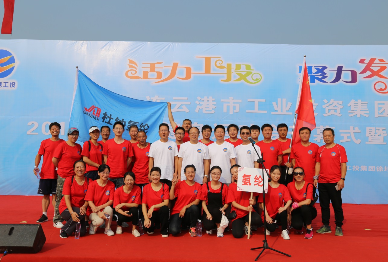 2017年9月23日,連云港市工業投資集團第一屆職工運動會開幕式暨健步走項目在徐圩云湖路南廣場舉行。集團董事長楊龍、總經理胡建明、工會主席戴鴻鳴等集團領導出席此次活動。氨綸公司全體領導與30名員工共同參加了此次活動。