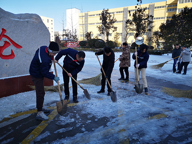 12月29日,港城迎來了2020年的第一場雪。白雪皚皚,北風呼嘯,廠區各個生產設施道路上都覆蓋上了厚厚的積雪。雖是一片銀裝素裹的美景,卻給廠內廣大職工的出行工作造成極大不便。為了保障公司安全穩定生產和員工出行道路安全,杜鐘氨綸公司黨委迅速組織開展了清除積雪大掃除活動。