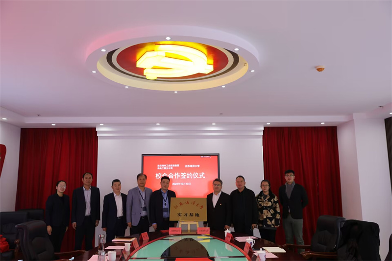為進一步深化教育教學改革,全面推進產教深度融合,更好的服務地方經濟的發展。近期,連云港市工業投資集團供電工程分公司黨委書記、總經理宋晟曄與江蘇海洋大學文法學院院長吳明忠開展校企聯合建立實踐教學基地,該校定期向連云港市工業投資集團供電工程分公司輸送2-4名學生進行實習鍛煉。10月13日上午,通過雙方負責人的簽約與授牌,簽署了校企合作協議,明確了具體合作方式,洽談學生培養等具體的合作事宜。