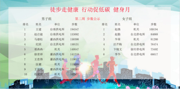 因?yàn)椤拔⑿胚\(yùn)動(dòng)”的互動(dòng)性和競(jìng)爭(zhēng)性,促使越來(lái)越多的職工開(kāi)始有意識(shí)地外出“走兩步”,在職工中形成了你超我趕的良好運(yùn)動(dòng)氛圍,有效減少了員工開(kāi)車(chē)出行的頻率,增加了員工參與戶(hù)外活動(dòng)、親近自然的興致?;顒?dòng)已經(jīng)進(jìn)行了兩周,已有10人步數(shù)超過(guò)20萬(wàn),最高者已經(jīng)達(dá)到34萬(wàn),人均步數(shù)比活動(dòng)前增加了50%,效果十分顯著。(電宣)