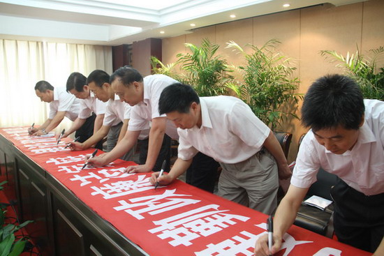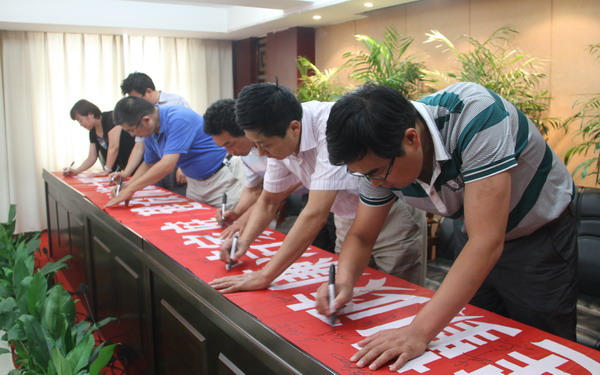 7月1日,公司舉行“創建勤政廉潔家庭,建設和諧文明供電”承諾簽名活動,公司領導班子成員及黨員干部共70余人參加活動。 公司旨在以此次活動為契機,強化廉政文化建設,不斷引導公司黨員干部提高廉潔自律意識,做到自重、自省、自警、自勵,從而在公司上下形成事事有監督、時時有監督、處處有監督的廉潔從業氛圍,進一步樹立金橋供電良好形象。(司宣 司紀)