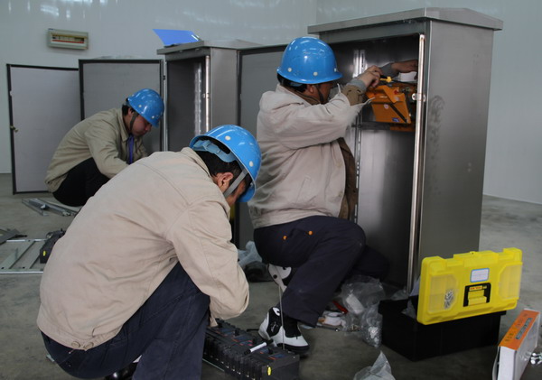 為快速、順利推進高低壓開關成套設備、三箱類產品、橋架及母線生產項目,公司高度重視相關管理、技術、市場經驗積累,購進數控機床,整合資源,創造條件,在抓好新廠籌建的同時,在原臺北供電所辦公場地進行低壓電氣設備開工試生產。領導班子成員全部親臨現場指導、觀摩。試生產現場,剪切、鉆孔、打磨、安裝、調試,有條不紊。一個個電纜分支箱、高低壓柜相繼“誕生”。低壓配電設備開工試生產,為加快項目建設步伐奠定了基礎。(司宣)