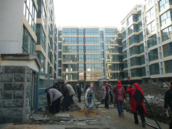 3月14日,由我公司承建的新浦兆隆小區三期配電工程正式開始興建,圖為公司工程部組織施工人員正在鋪設電纜。
