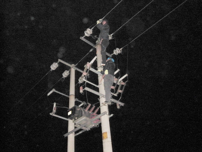 時下正是養殖揚水高峰期。3月6日晚20:37分,值班人員接到用戶電話反映:黃下線電壓不穩,變壓器及配電箱聲音異常,并發現高壓線路有火光現象,值班人員趙勇及時到現場。經查看,是黃下線26號桿柱上斷路器,A相銅鋁樁頭養化接融不良所致。原因找到后,從21:05分組織人員進行搶修,搶修人員克服夜間天黑等諸多困難,21:56分及時恢復供電,保證了養殖搶水。(宋中文 李衛田)