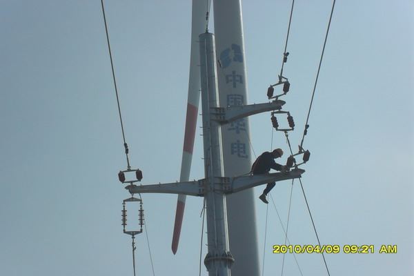 連日來,灌西供電所干部職工主動放棄節假日,起早貪黑參與風力發電線路安裝架設工程,目前各項工作進展順利。上圖為工人正在進行高空桿作業。(王志勇)
