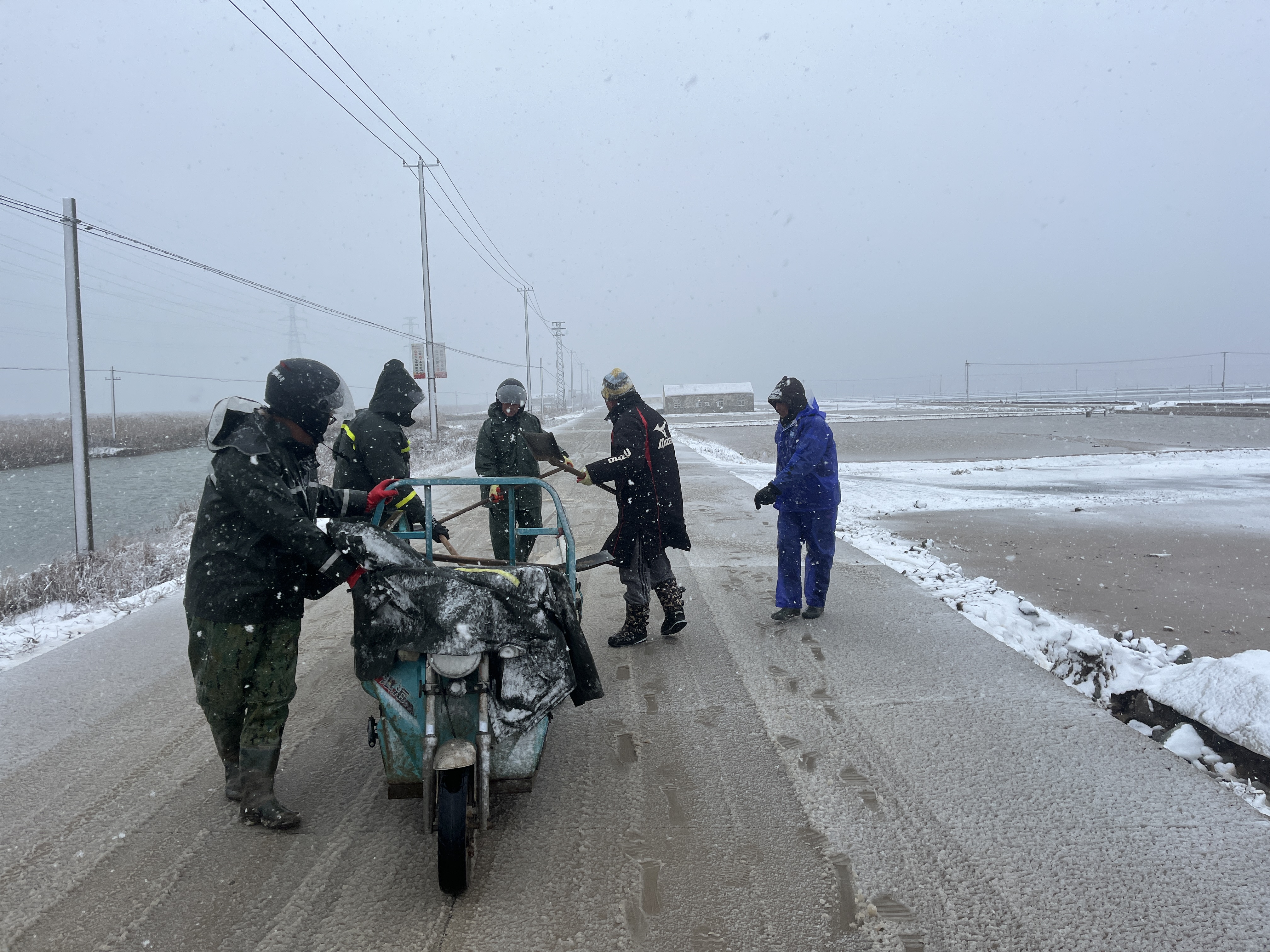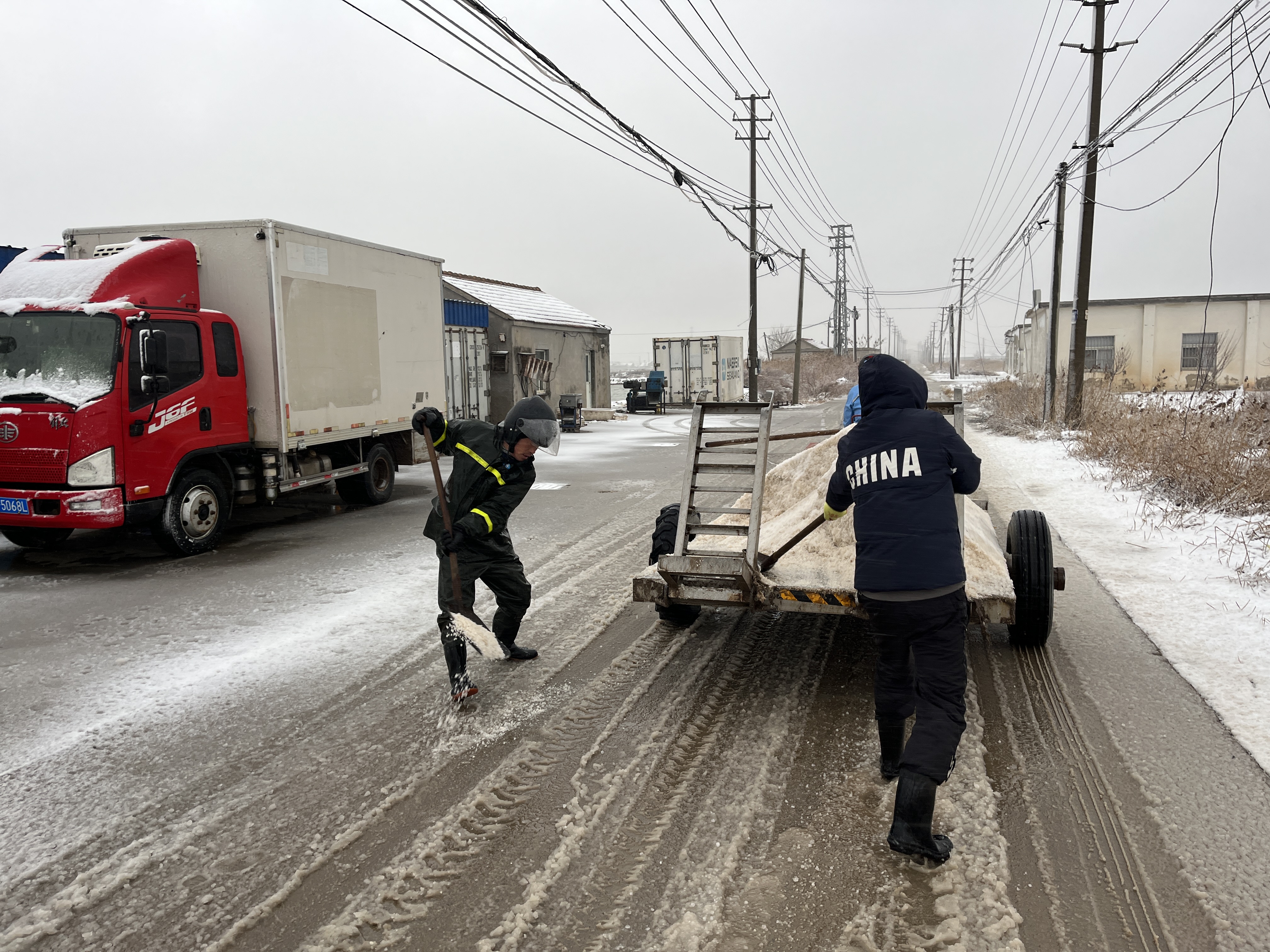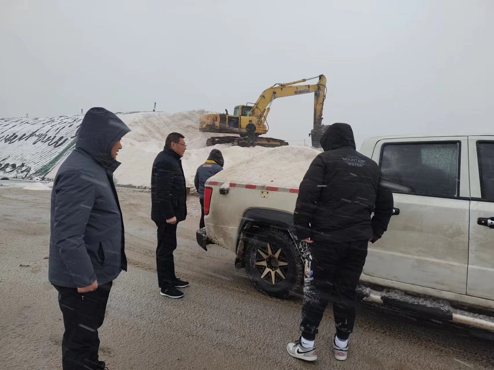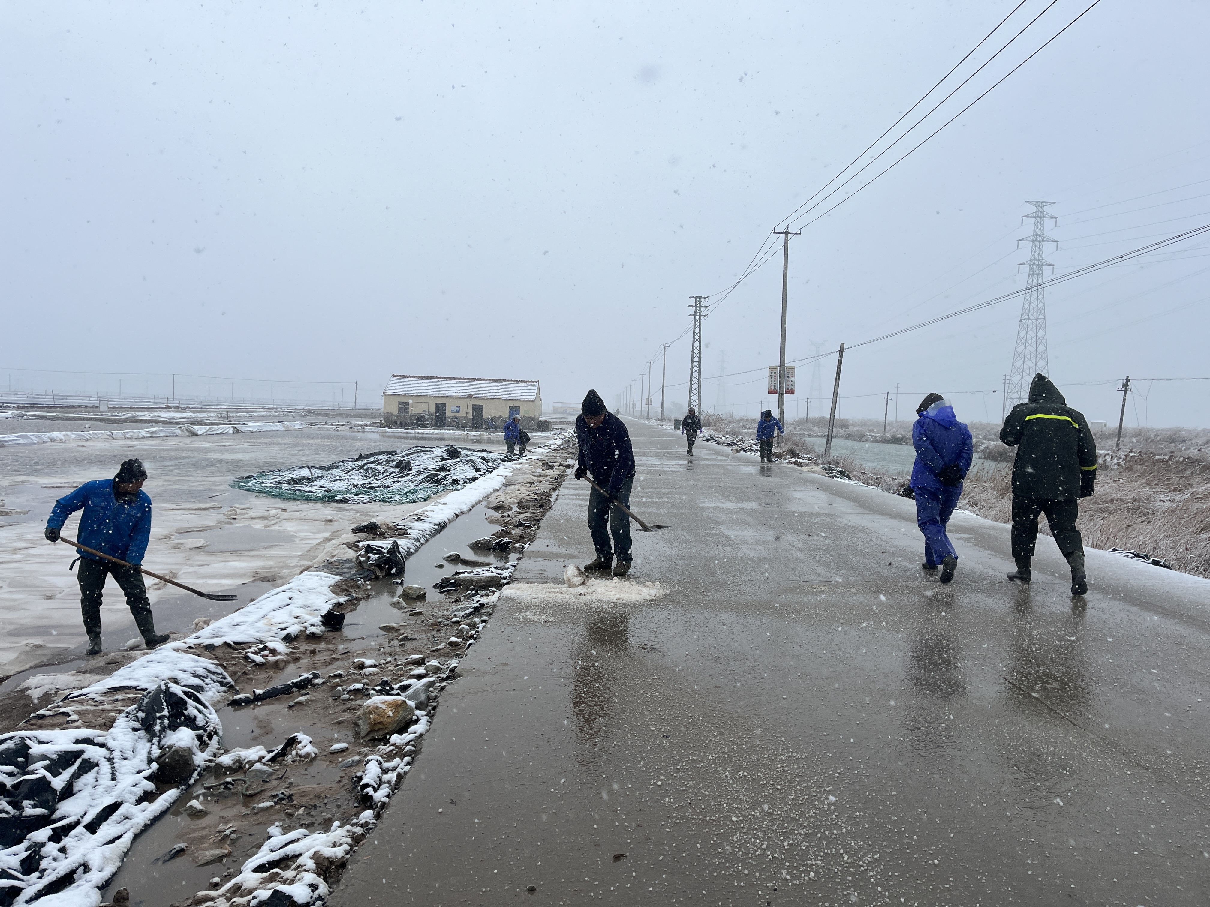 以雪為令,全力奔赴清雪戰一線。隨著降雪量增大,采取“人工+機械”的作業方式,使用自產原鹽融雪劑對轄區中二圩居民點、鹽灘內部道路、辦公區域等20余條主次干道不間斷地毯式清雪除冰作業。清雪現場,大家不畏嚴寒,積極行動,鏟的鏟、推的推,干得熱火朝天,開辟出一條方便群眾出行的“安全路”。截止目前,已累計出動車輛30余臺次,300余人次參與清雪除冰行動,確保職工群眾“雪中通行,雪后路清”。