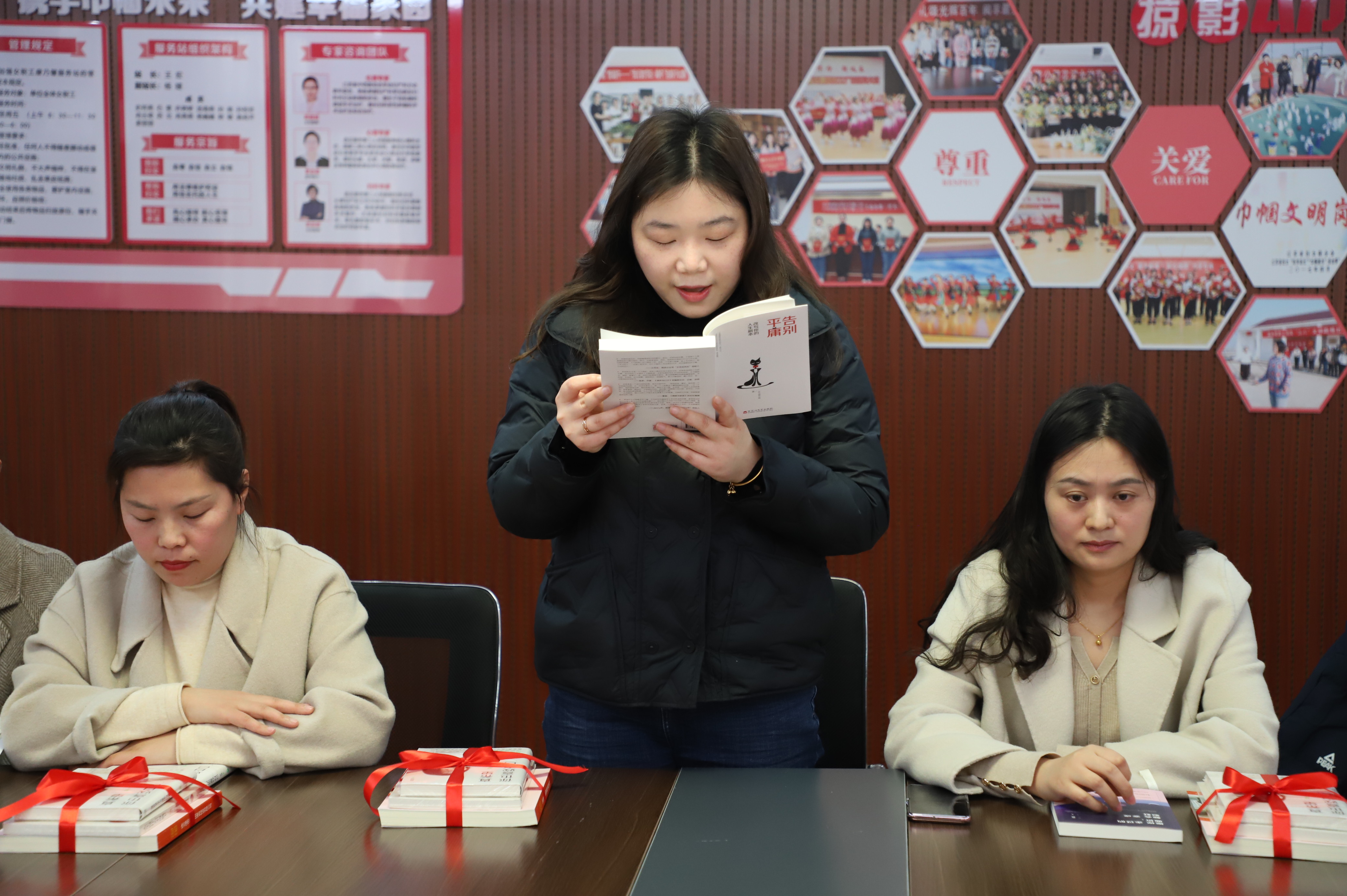 來吧,來吧,相約三八。相約在春光明媚的三月里,相約在閱讀分享的文韻里,相約在康乃馨服務(wù)站里......。3月7日下午14:00,公司工會開展的“巾幗心向黨”主題讀書分享會在女職工朗朗的誦讀中拉開帷幕。來自公司各條戰(zhàn)線上的女職工們從教育、文學(xué)、哲學(xué)、健康等方面內(nèi)容,進一步抒發(fā)家國情懷,弘揚時代精神,給我們帶來了一場聽覺盛宴。塑造知識型的“她”,并為女職工贈送有關(guān)紅色主題、女性勵志等方面的書籍,在廣大婦女中營造“好讀書、讀好書、讀書好”的良好氛圍,促進家庭文明、社會和諧。