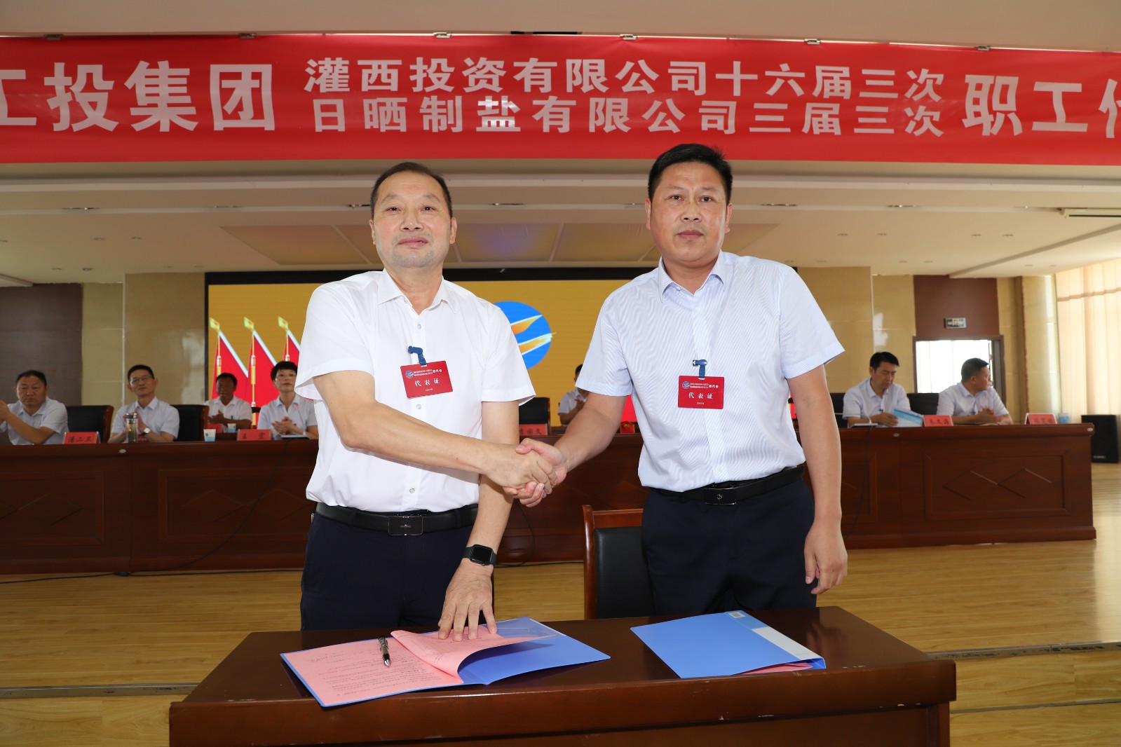 砥礪奮進正當時,乘風破浪再揚帆。9月1日上午,在雄壯的國歌聲中,灌西投資公司十六屆三次職代會暨日曬制鹽公司三屆三次職代會在機關五樓會議室隆重召開,來自各條戰線的職工代表齊聚一堂,共商企業發展大計。黨委書記、董事長、總經理李國文作講話,常務副總經理吳衛平作《工作報告》。黨委副書記、工會主席王宏主持大會。