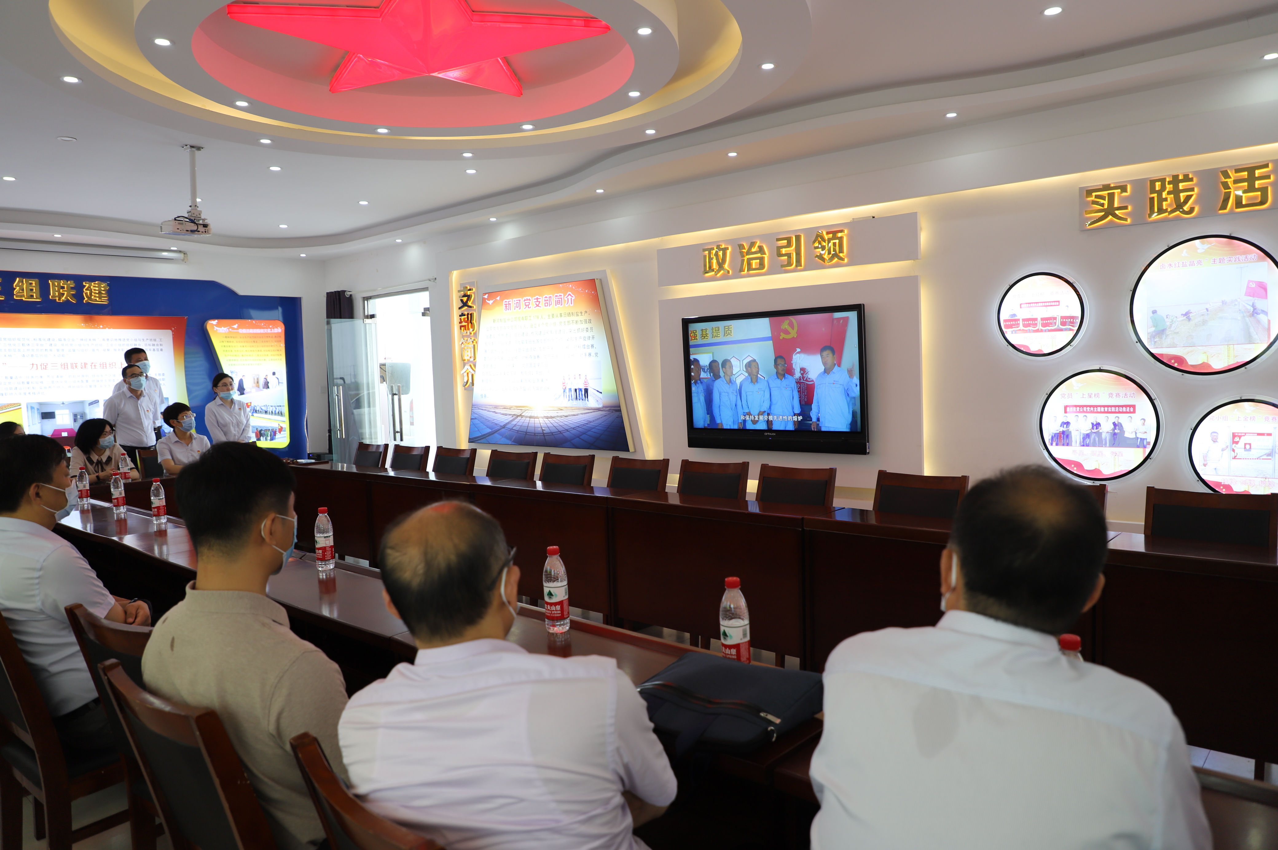 城建控股集團產改調研組一行分別到日曬制鹽公司新河分公司黨建活動室、八班班組活動室以及灌西投資公司的廉政文化展廳、職工書屋等處參觀學習,觀看了黨建帶工建專題片《“四+模式”助推勞模創新工作黨支部“雙創雙提升”》和《安樹林勞模創新工作室科技創新成果》視頻介紹,在隨后召開的交流會上,劉承志、李國文分別就工投集團和灌西投資公司的產改工作進行了交流。