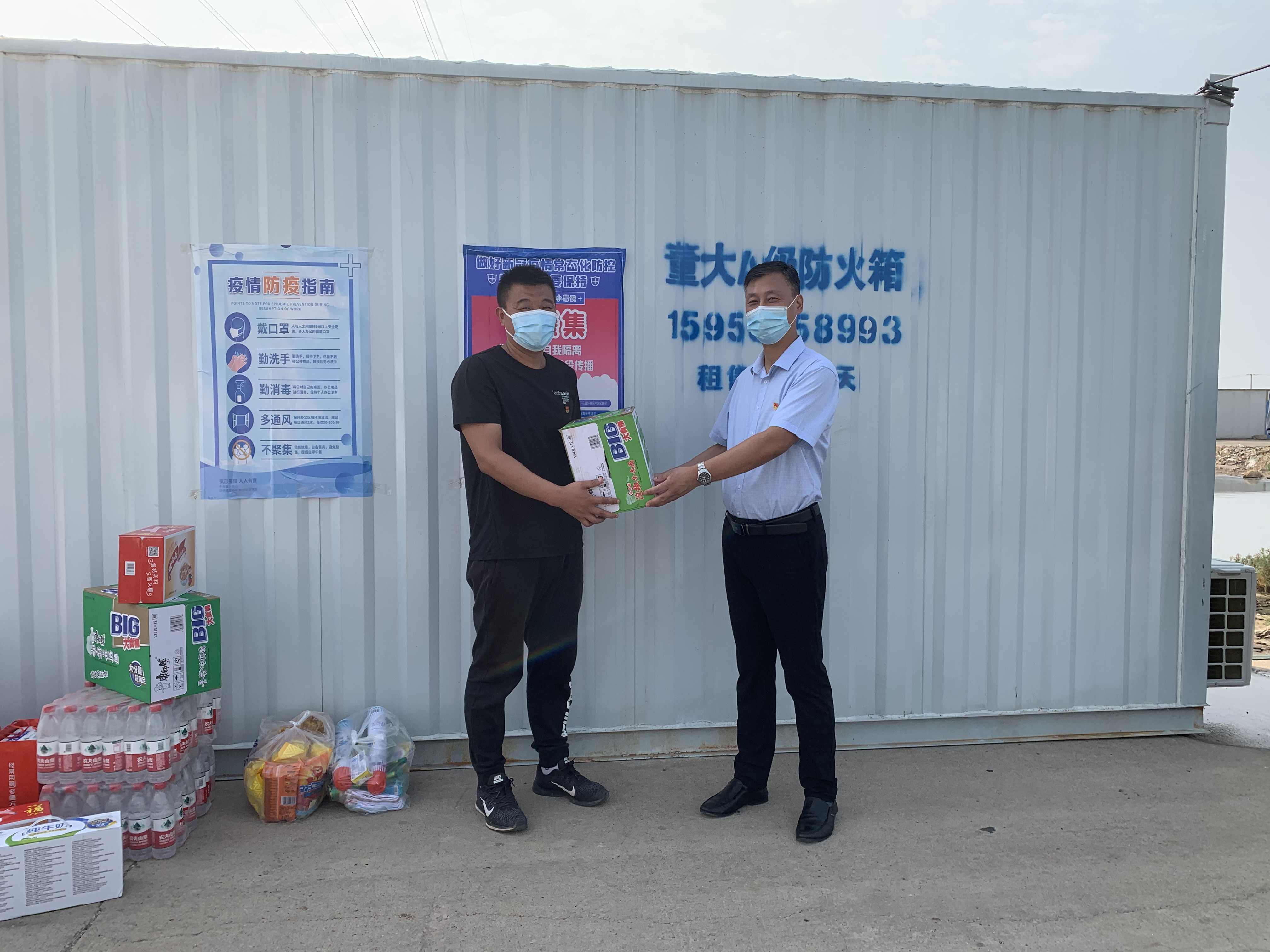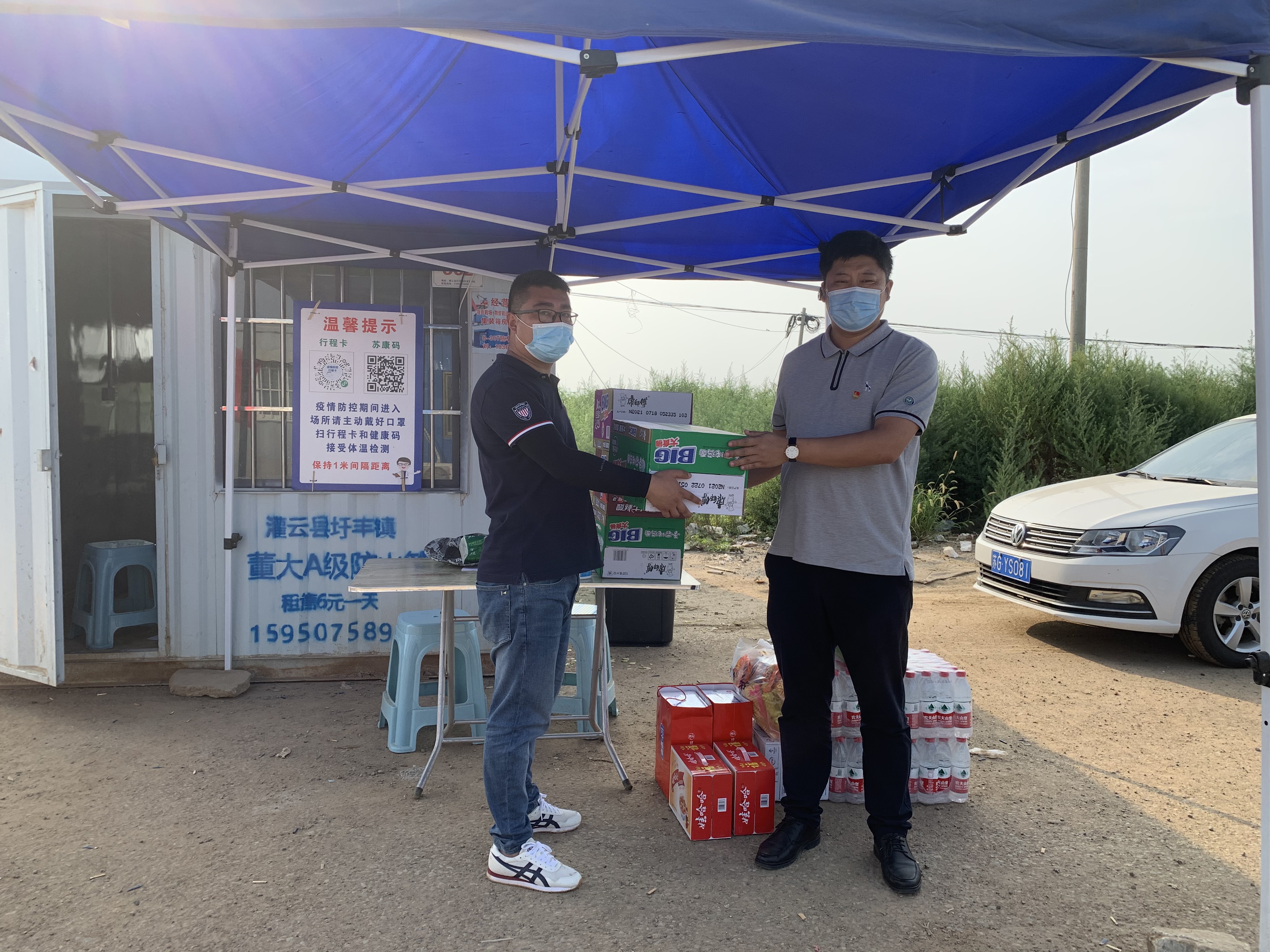 在各個(gè)路口卡點(diǎn),公司領(lǐng)導(dǎo)向始終堅(jiān)持在疫情防控一線的工作人員及志愿者們致以親切問候和衷心感謝,叮囑大家要強(qiáng)化自我防護(hù),嚴(yán)格按照標(biāo)準(zhǔn)、程序、規(guī)范做好疫情防控工作,攜手共筑防疫屏障,并親手為他們送上、牛奶、八寶粥、方便面、蚊香等慰問物資。(西工)