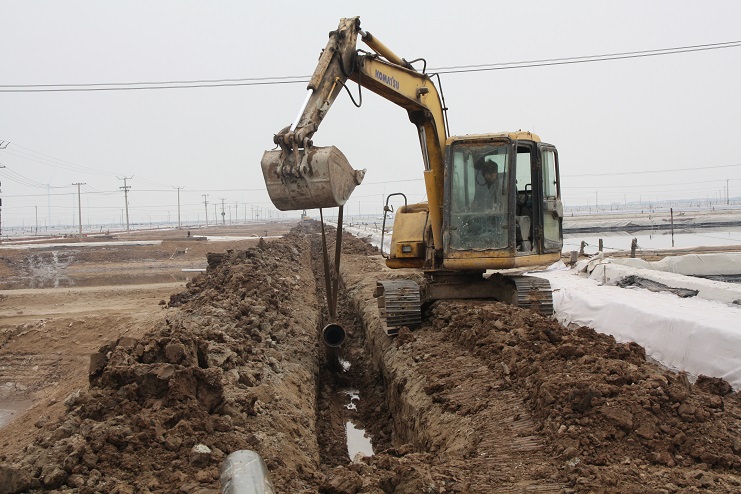 4月5日上午,日曬制鹽公司灘頭機(jī)械轟鳴,兩臺挖掘機(jī)正按照事先分工,有序的將深埋在地下的廢舊除硫管道挖掘出來。據(jù)了解,這些廢舊除硫管道按照原先設(shè)計,主要用于承擔(dān)鹵水除硫后的輸送工作,后因生產(chǎn)工藝的改進(jìn),導(dǎo)致管道一直處于閑置狀態(tài)。而此次回收并再次利用這些管道主要是為了在進(jìn)一步改進(jìn)生產(chǎn)工藝的基礎(chǔ)上,最大化節(jié)約生產(chǎn)成本。據(jù)介紹,目前日曬制鹽公司在生產(chǎn)中主要采取串聯(lián)式加鹵的方式進(jìn)行,除硫后的鹵水無論輸送至哪一格塊,都必須按照先后順序依次經(jīng)過前排格塊,這不僅大大降低了輸送效率,也不利于對鹵水的有效管理,更造成了一部分浪費(fèi)。相比較而言,通過改串聯(lián)式加鹵為并聯(lián)式加鹵后,鹵水將會從除硫池直供缺鹵格塊,在提高供鹵效率的同時,也能夠有效降低跑冒滴漏現(xiàn)象的發(fā)生。
