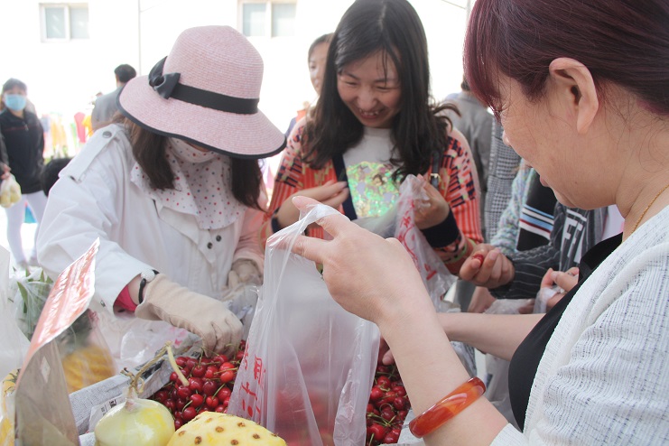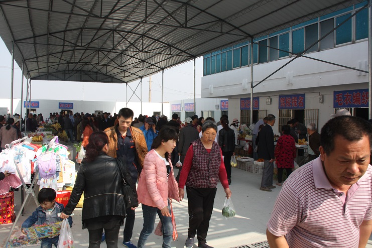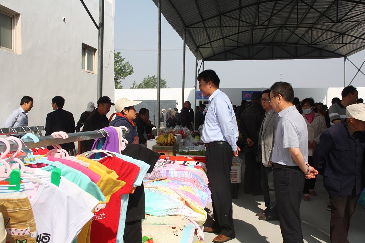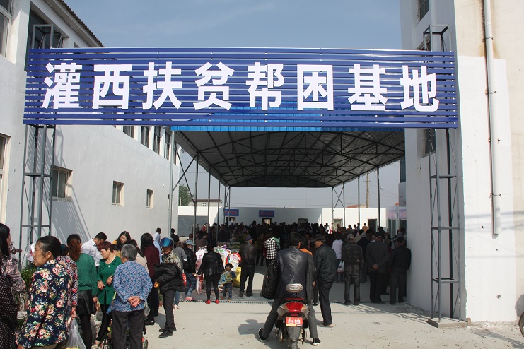 5月12日隨著一陣鞭炮聲響起,灌西扶貧幫困基地經過一個多月的施工建設,如今正式投入使用。基地內,賣水果蔬菜的、糧油衣服小販商戶,購物買菜的職工群眾來來往往,人頭攢動,一派熱鬧景象