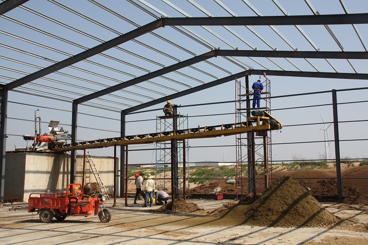 5月18日,位于北北歐農莊生豬養殖廠旁邊的綠淮肥業公司有機肥生產基地,一個鋼結構廠房即將完工,只見機聲轟鳴、焊花飛濺,機電服務公司的工人在勞模王緒華帶領下正在焊接鋼結構件,而正在建設施工中的廠房內,兩條有機肥生產線運轉不停,沒有因廠房建設而停產,廠房旁邊的一臺挖掘機正在整平場地,一邊建設,不邊生產,一派紅火景象。
