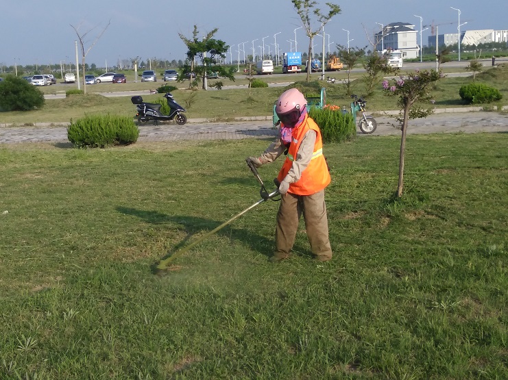 8月11日下午,在臨港產業區行政中心的一片草坪上,南翼綠化養護工人正在除草,修整草坪,在陽光的照耀下,養護工人的橙色工作服在綠郁蔥蔥的草坪映襯下,分外醒目。只見他們頭戴防護頭盔,手持割草機,認真細致地修整草坪,割草機轟鳴聲不絕于耳,尤如交響樂,青草漬的清香味頓時撲鼻而來,一會兒功夫,就清除一大片雜草,原先雜草叢生的草坪煥然一新。當前,該公司正深入開展學習“華茂精神”活動,結合公司實際,認真學習華茂公司的創業精神、擔當精神、團隊精神和奉獻精神,激勵員工發揚艱苦奮斗不怕吃苦,愛崗敬業甘于奉獻的精神,不斷提高員工的各項素質,開展技能與業務培訓,充分發揮好各位員工的內在潛能,樹立主人翁的工作熱情,做好綠化養護工作,全力向公司年度目標任務沖刺。(季興勝)