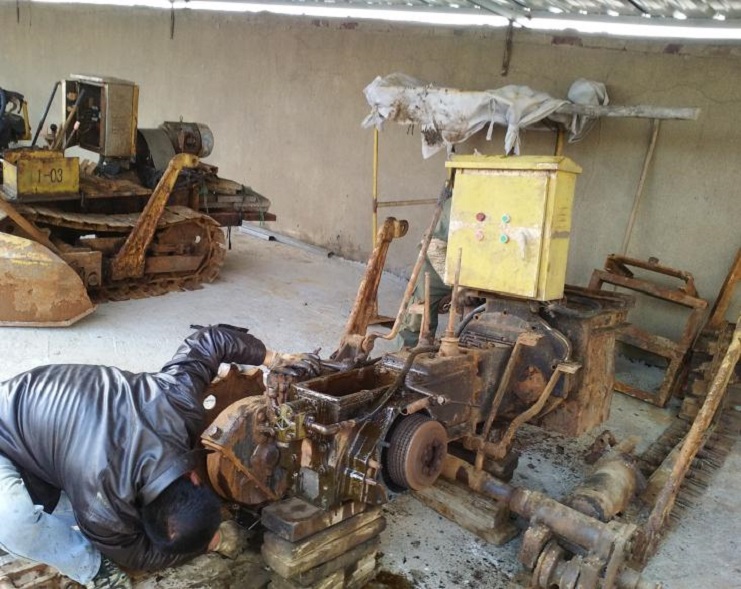 最近,日曬制鹽新河分公司2016年下半年扒鹽工作,接近尾聲,各扒鹽機組陸續完成扒鹽任務,機械先后搬回分公司。該分公司機電組為了確保來年扒鹽機械能夠拿得出,打得響,積極對回來的機械進行維修、保養;目前,已完成2套機械的保養工作。(圖為機電工人正在維修、保養扒鹽機械)。