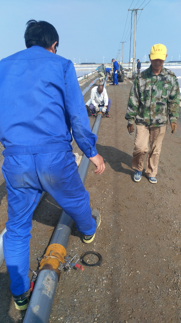為節(jié)省扒鹽管道拆、裝時間,提高扒鹽速度,減輕扒鹽人員負荷,6月11日上午機電服務公司新制快接管道在埒南制鹽公司11班進行現(xiàn)場實踐。他們放棄休息日,制作人員全員參與,市勞模王緒華、一星級員工程洪連、黨員楊軍,他們個個不怕臟和累,經(jīng)過一個多小時操作,管道安裝結束,在幾次調試后,扒鹽機組運行正常。該快速接頭優(yōu)點是安裝、拆解快捷,節(jié)約成本,不足是皮墊易漏鹵。通過此次試運行,對不足之處,該公司將繼續(xù)研究,爭取早日投入鹽業(yè)生產,創(chuàng)造效益。(機電服務公司)