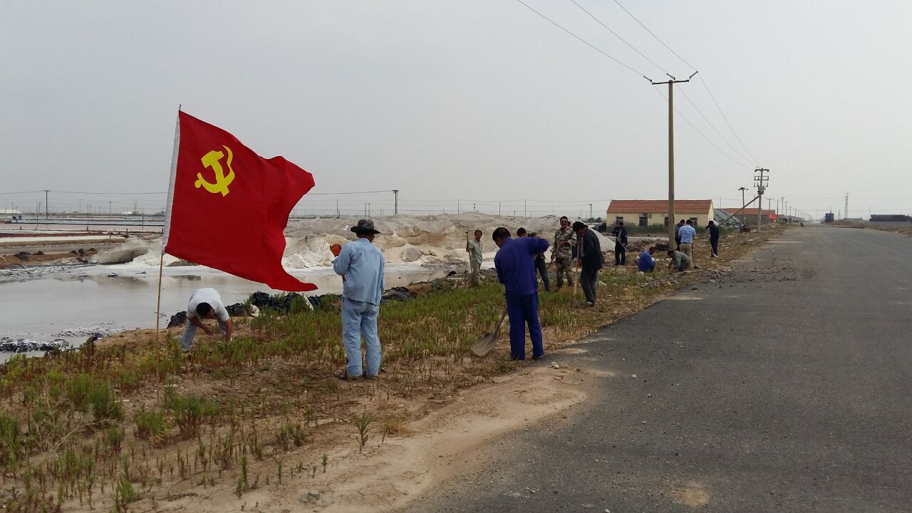 為慶祝中國共產黨成立96周年,把“兩學一做”學習教育活動進一步實踐化、具體化。 6月19日,埒南制鹽分公司組織全體黨員開展“迎七一”黨員奉獻日活動,全體黨員干部利用休息時間,頂著炎炎烈日來到九班、十班開展義務勞動。大家熱火朝天的清理廩基和路基間的雜草、撿拾垃圾為公司班組的灘場文明做出自己的奉獻。