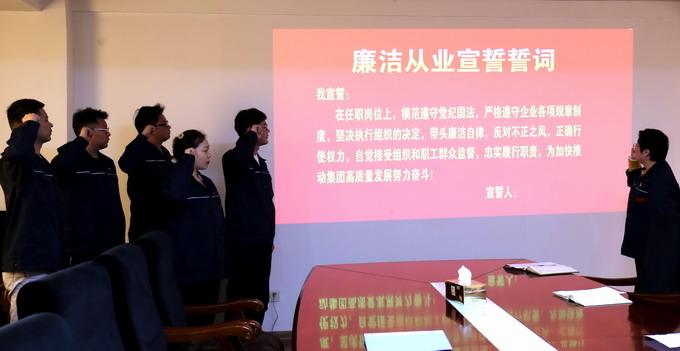 會議傳達了集團紀委《關(guān)于扎實開展年輕干部“廉政教育月”活動的通知》文件精神,簽訂了《廉潔承諾書》、發(fā)放了《家庭助廉倡議書》和進行廉潔從業(yè)宣誓。