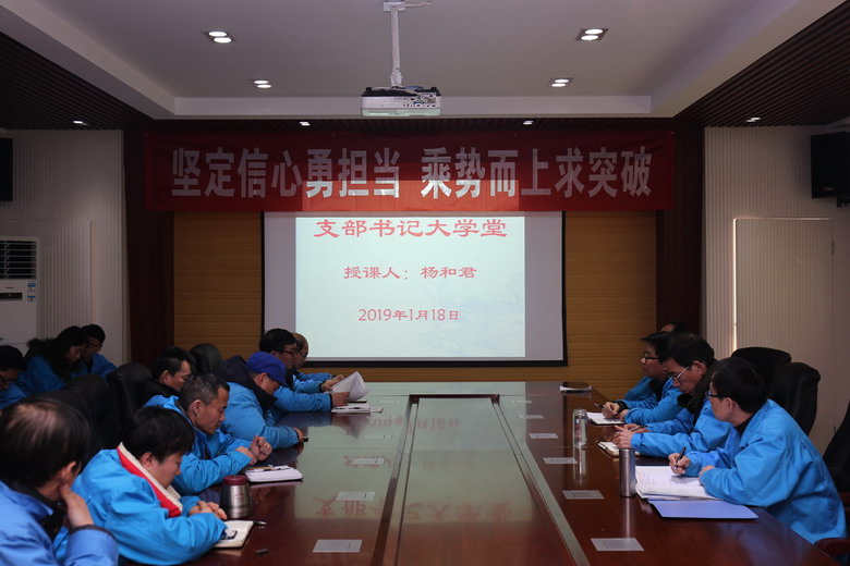 1月18日,我公司各支部組織開展“堅定信心勇?lián)敗⒊藙荻锨笸黄啤敝黝}黨日活動。