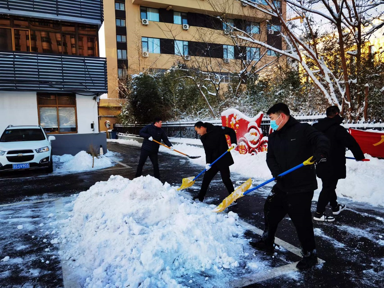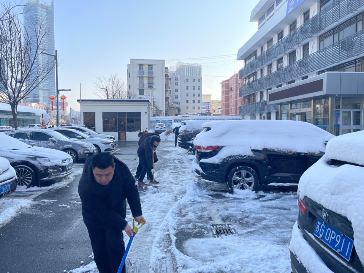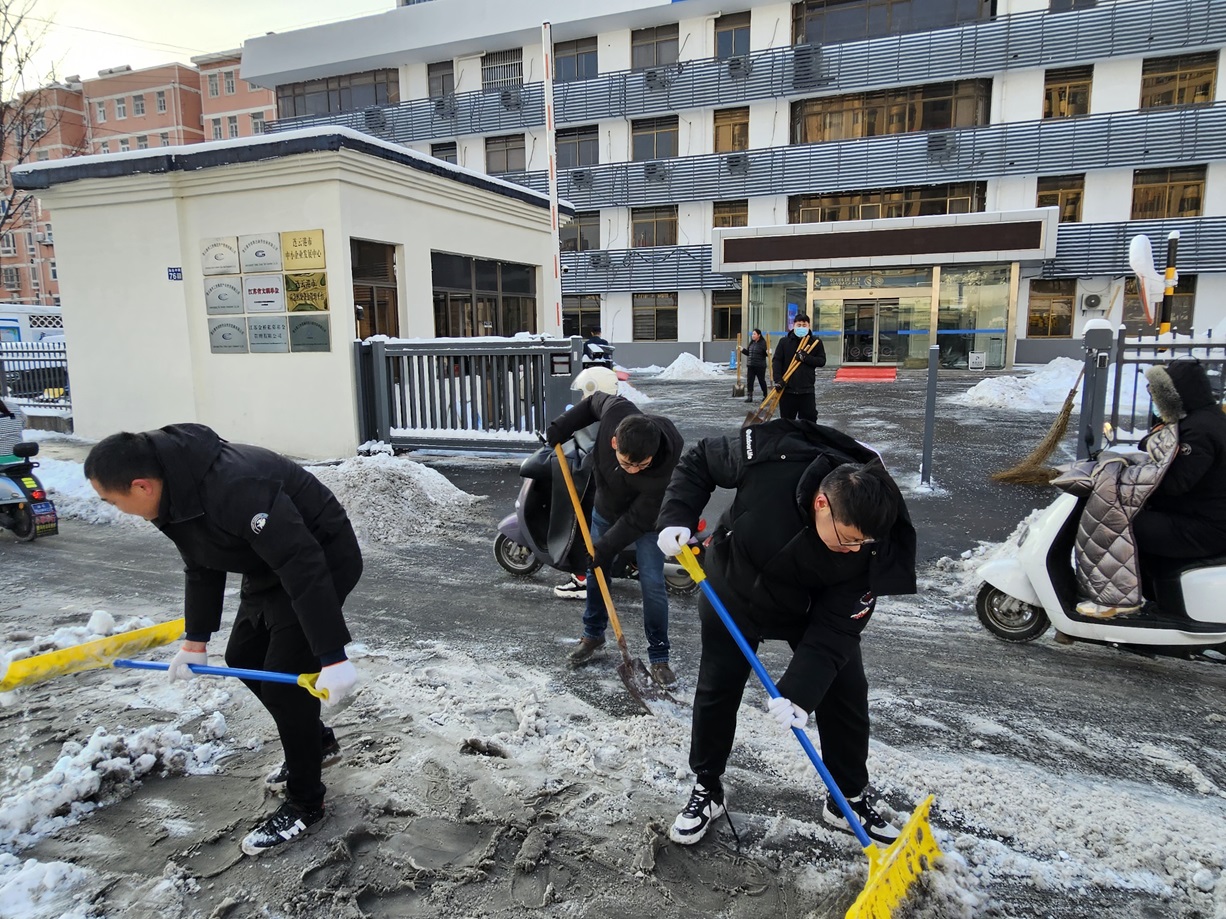 搶干會干巧勁足。“這塊用雪鏟推就行”“那邊不需要掃,直接撒融雪劑”“換這個,更省力”,掃雪現場,大家齊心協力,組織有序,紛紛施展出自己的“巧勁”。有的員工用鐵鍬鏟雪,有的用掃帚清掃,還有的負責運輸積雪。一時間,院內響起“叮叮當當”了鏟雪聲、掃雪聲,匯成了一首團結協作、搶干會干的的贊歌。
