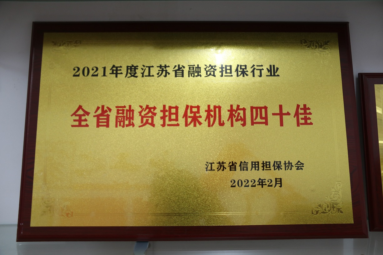被省擔(dān)保協(xié)會(huì)評(píng)為“江蘇省2021年度融資性擔(dān)保機(jī)構(gòu)四十佳”。