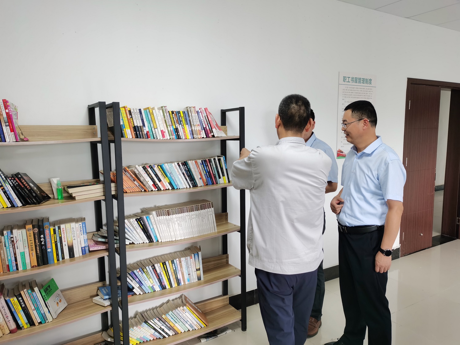 在實地參觀過程中,深入了解了書屋建設、布局、管理、圖書分類及更新、登記等具體方面的內(nèi)容,并就相關(guān)黨建、工會活動開展情況與神特新材料黨支部副書記、工會主席袁忠等進行了交流討論。