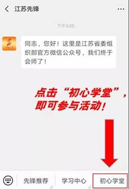 各單位黨群工作部: 為引導廣大黨員干部認真學習《習近平談治國理政》第三卷,推動黨的科學理論“飛入尋常百姓家”,“江蘇先鋒”公眾號特開辟“初心學堂”小程序,請組織本單位黨員干部8月12日—10月30日登錄“初心學堂”小程序一起聽音頻、讀原著、悟原理!(請各位黨員登陸后,單位名稱統一填寫為:連云港市工業投資集團有限公司) 第一步:關注“江蘇先鋒”公眾號